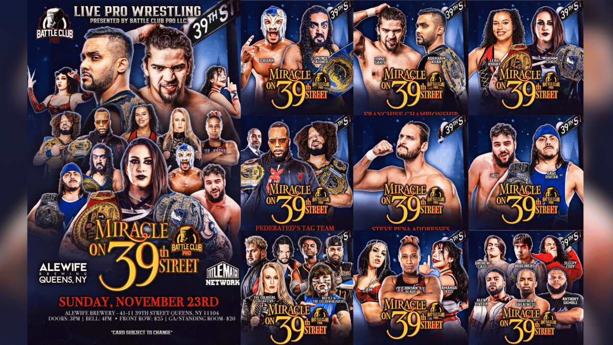 playBattle Club Pro returns with Miracle On The 39th Street — a year-end banger packed with championship clashes, high-stakes multi-man battles, and some of the strongest talent on the independent scene. Featuring Abraham Khan, Sammi Chaos, Jorge Santi, FPS, Federated, Prince Ahmed, Ichiban, and more!
