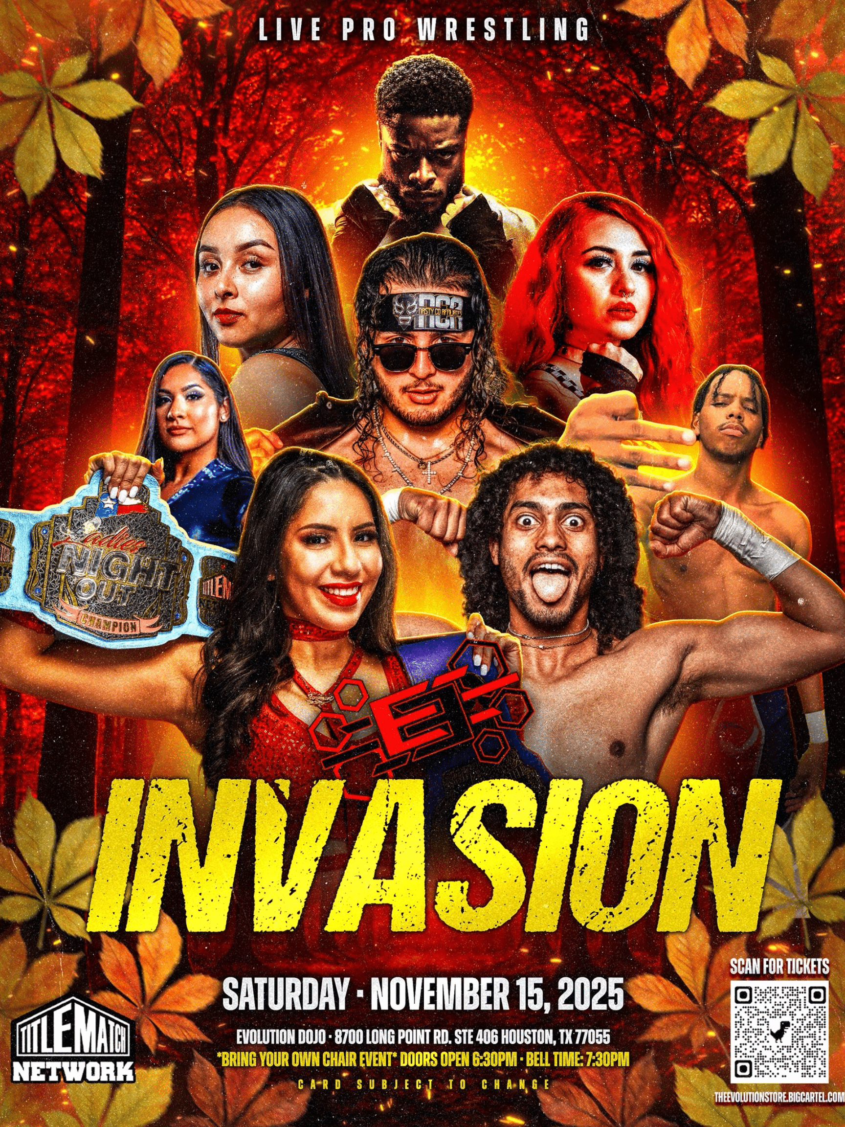Experience the explosive action of INVASION, where Evolution Lucha Libre brings together top rising stars of lucha, puro, and U.S. indie wrestling. With a Ladies Night Out Championship match, hard-hitting singles action, and breakout performances, this is one lucha event you can’t miss!