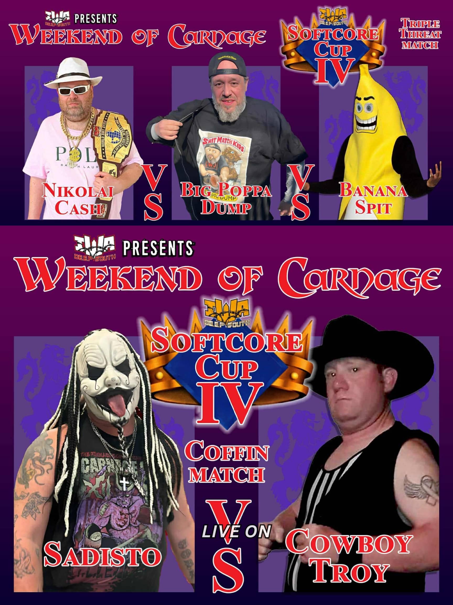 Soft Core Cup 4 First Round Last Rites Coffin Match: Cowboy Troy vs. Sadisto