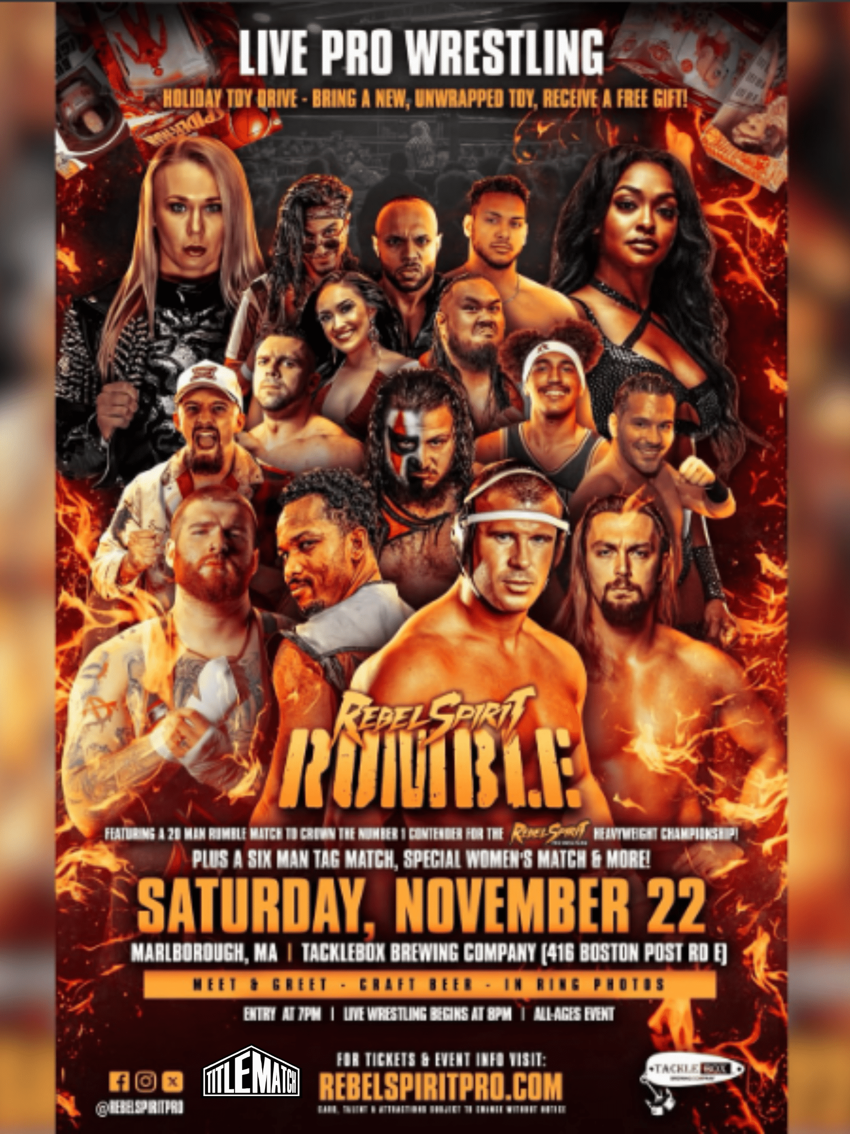 Rebel Spirit Pro Wrestling returns with a high-energy live event packed with hard-hitting matches, top-tier talent, and the unpredictable Rebel Spirit Rumble Match!
