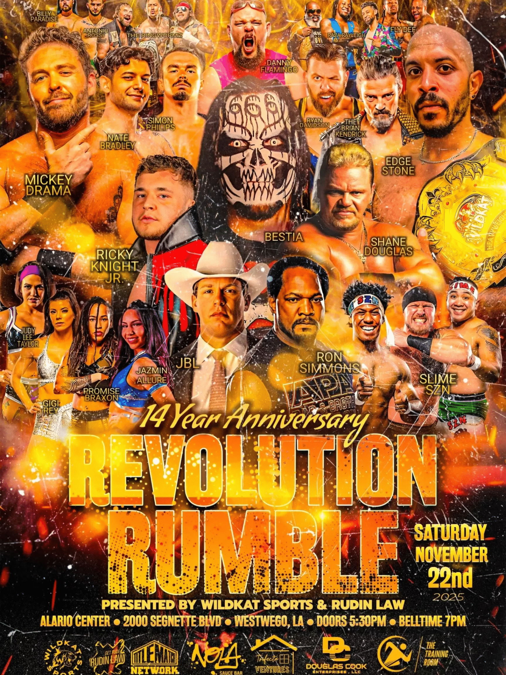 WildKat’s Revolution Rumble continues its legacy of showcasing the top rising stars of the Gulf Coast while spotlighting major names from across the wrestling world. From championships on the line to the chaotic Rumble bout, the 14-year celebration brings together everything fans love about WildKat Wrestling.